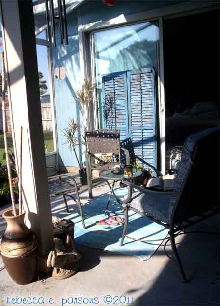 Restful, calm and relaxing place to gather for a cool drink or a quiet read...love the long shadows at sunrise