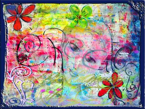 Recent artwork…digital collage from original sketches, paintings, doodles, photographs for PhotoShop Designer 1 Mixed Media Explorations course. Still time to sign up!!