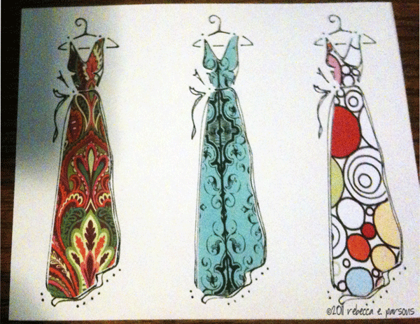 a card made with one of her dresses…